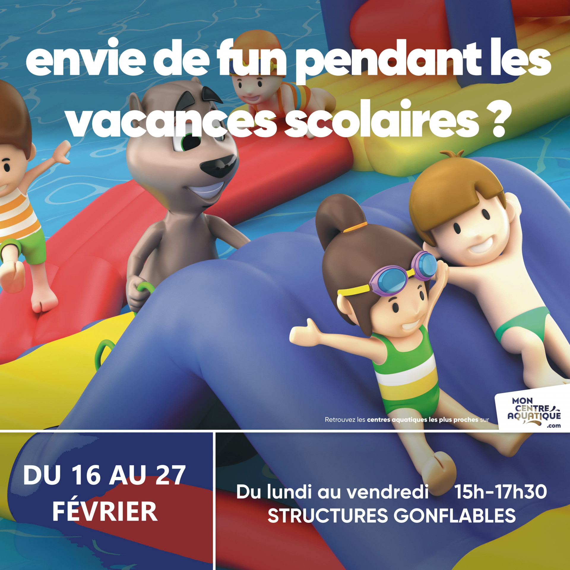 Aquatique : 17:00 - 19:00 | Bien-être : 10:00 - 13:30 et 14:00 - 20:00