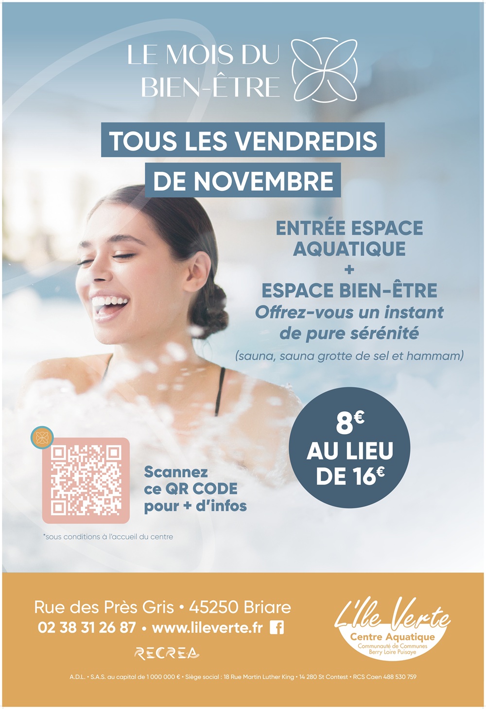 Venez vous détendre les vendredis de novembre pour seulement 8€ au lieu de 16€